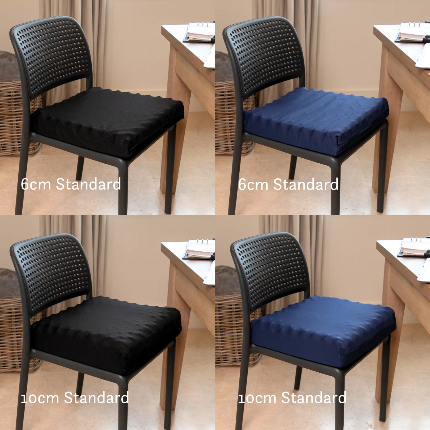 We also offer cushions with cutouts to relieve pressure in specific regions, as well as spare cushion covers.