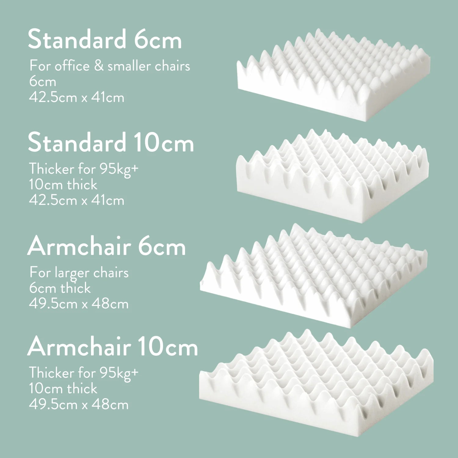 Available in two thicknesses (thicker version for heavier people of 95kg/15 stone+)